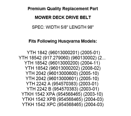 Deck Belt For Husqvarna Yt1942 Yth2042 42 Cut 532197253 592855001